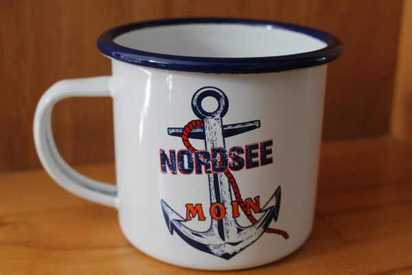 Emaille Tasse Nordsee mit Anker, 2-seitig bedruckt